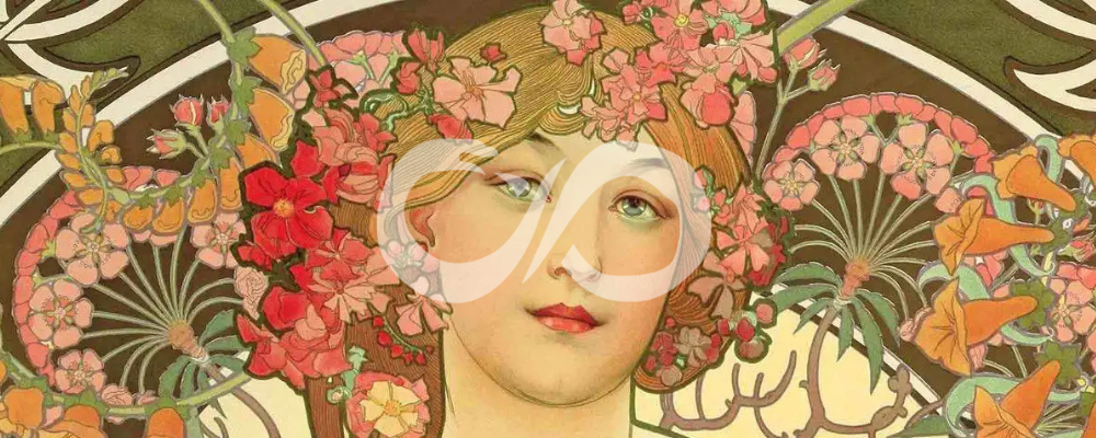 Alphonse Mucha, peintre, affichiste et décorateur d’origine tchèque, est l’un des noms les plus emblématiques de l’Art nouveau. Né en Moravie, il étudie à Munich avant de s’installer à Paris, où il se fait remarquer grâce à son style. La carrière de Mucha prend un tournant décisif en 1894, lorsqu’il réalise une affiche pour Sarah Bernhardt, célèbre actrice de théâtre. Cette collaboration marque le début de son ascension fulgurante.