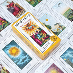 Le Tarot d’Etteilla lui-même a connu une longue postérité. Après la mort d’Alliette en 1791, ses disciples ou associés continuent d’éditer et de perfectionner son jeu “égyptien”. Tout au long du 19ème siècle, on publie à Paris plusieurs versions dérivées du Grand Etteilla, contribuant à populariser ce tarot occultiste auprès des amateurs d’ésotérisme. En 1807 notamment paraît le Petit Oracle des Dames, sorte de version simplifiée du tarot d’Etteilla, adaptée à un public mondain féminin. Ce jeu de société divinatoire, bien que paru après Etteilla, s’inscrit dans la lignée de son œuvre en proposant des lames illustrées de scènes prophétiques avec des interprétations faciles à utiliser. Le nom d’Etteilla reste ainsi attaché aux premiers tarots divinatoires en vogue tout au long du 19ème siècle.