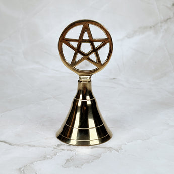 Cette cloche rituelle en laiton sera idéale pour marquer vos offrandes et demandes sur votre autel. Elle est ornée d'un pentagramme qui sert de poignée.