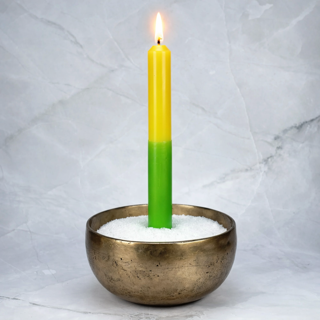 Ce grand cierge magique, conçu avec deux couleurs distinctes, est spécialement formulé pour amplifier les effets des sorts et rituels dans lesquels il est utilisé. La combinaison du vert et du jaune, disposés dans cet ordre, crée une synergie puissante symbolisant la croissance, la stimulation intellectuelle et la réussite financière.