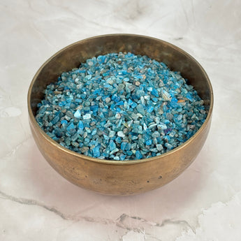 Ces éclats d'Apatite Bleue sont ici proposés en 100g.