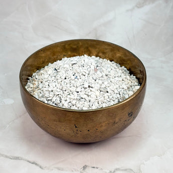 Ces éclats roulés de Howlite sont idéaux pour préparer vos fioles, bouteilles sorcières, charmes et mojos. Pierre discrète, elle aide les timides à s'affirmer avec conviction. Elle favorise également l'équilibre émotionnel et la sérénité.