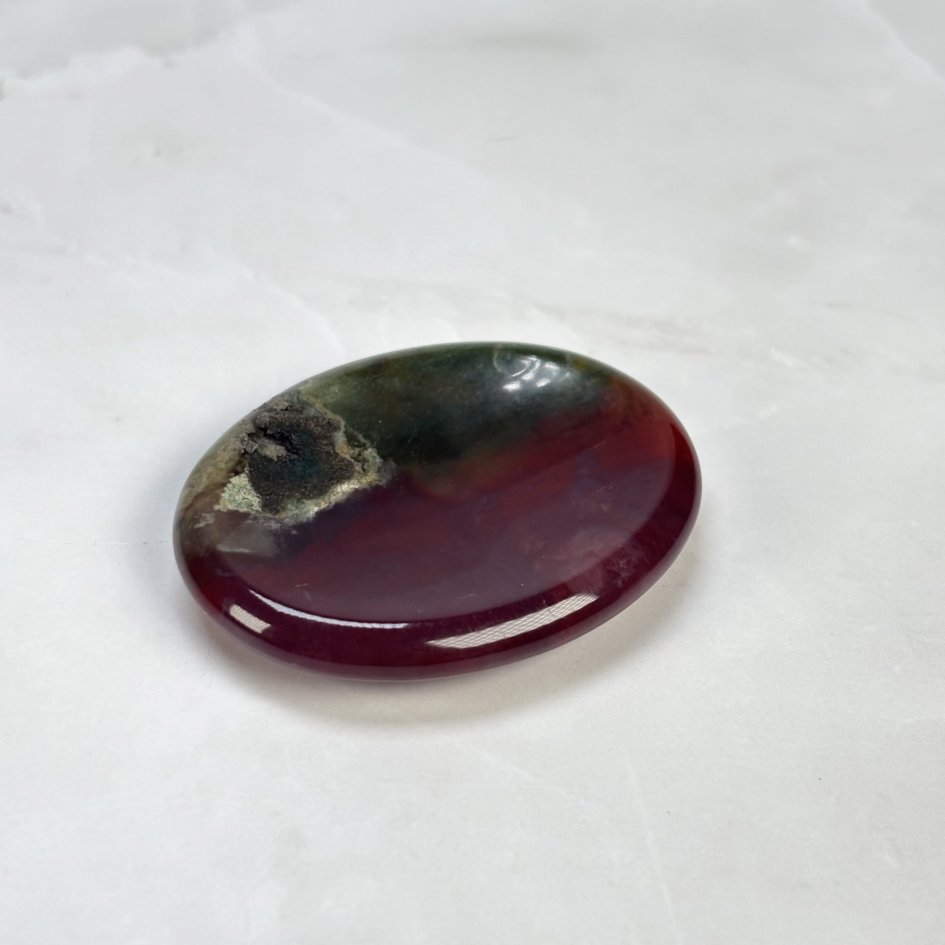 Ces worry stones (ou pierre d'inquiétude) de Jaspe Héliotrope en qualité Media (AA) sont vendues à l'unité. Chaque exemplaire est ainsi unique et l'aspect peut naturellement varier.