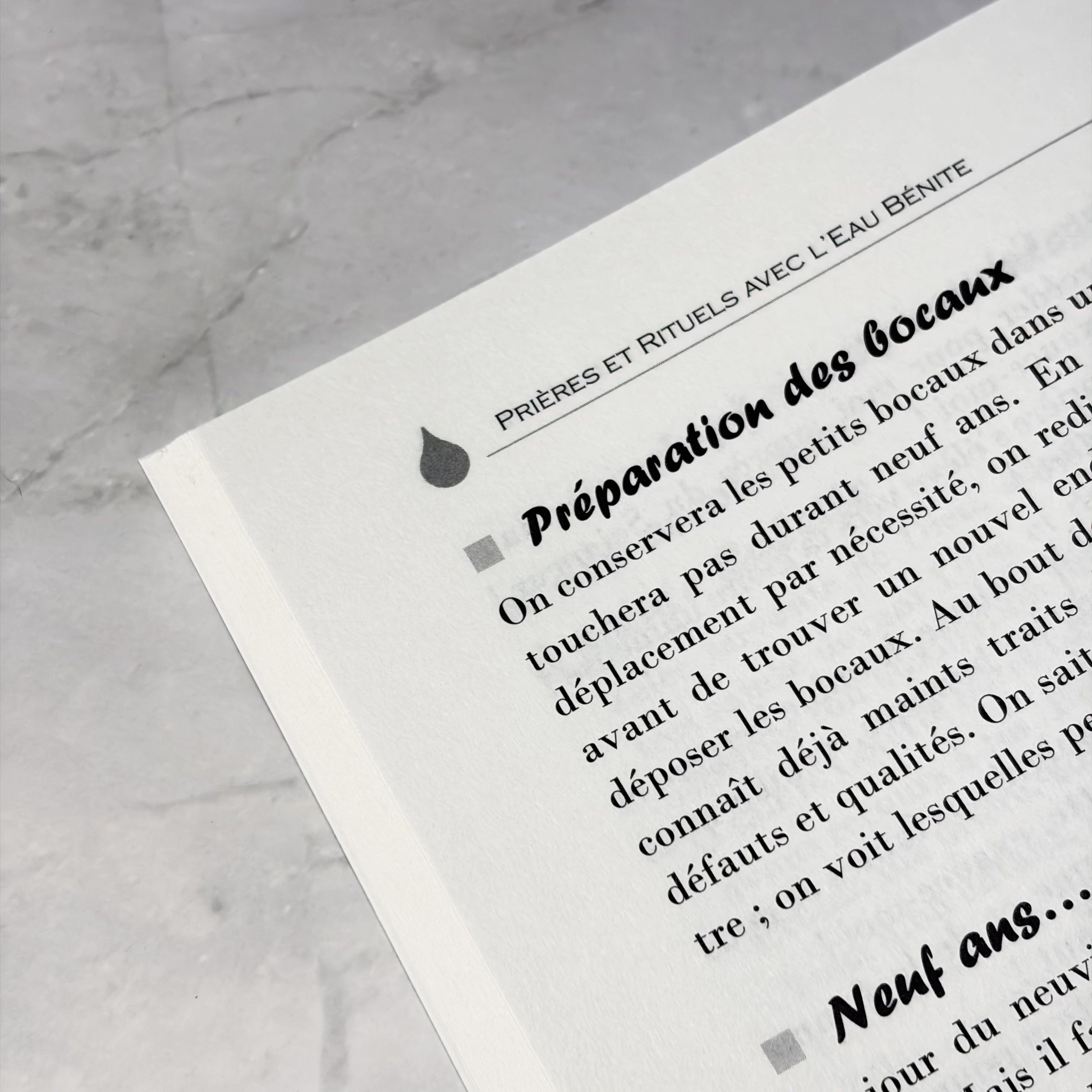 Au-delà des explications, cet ouvrage se présente comme un guide clair pour intégrer l’eau bénite dans le quotidien. Il expose les méthodes, les gestes et les formules consacrées, en suivant une progression logique qui facilite la mise en pratique. L’eau bénite trouve sa place dans la protection d’un lieu de vie, dans les gestes de purification ou dans un cadre plus personnel. Le texte accompagne le lecteur dans cette utilisation, avec des indications précises qui permettent d’agir sans hésitation. Il offre ainsi un support concret pour comprendre et utiliser cet élément dans une démarche structurée.