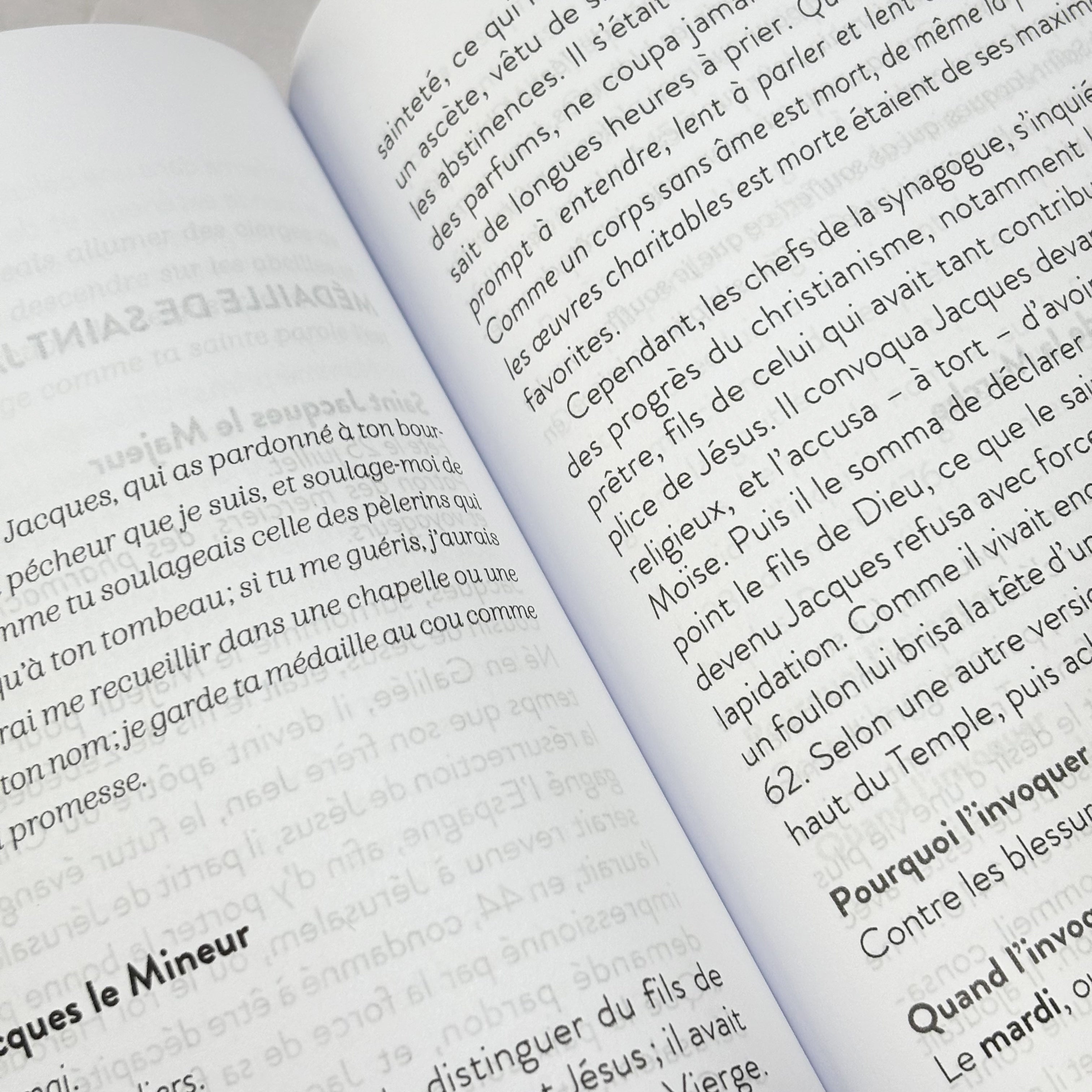 Le livre met en avant l’association entre la médaille, la figure invoquée et la prière correspondante, récitée au moment approprié. Cette articulation précise donne un cadre stable à la démarche et permet une pratique régulière et lisible. L’ensemble favorise une relation personnelle et directe, soutenue par des repères clairs, sans dispersion ni complexité inutile. Un index pratique facilite la consultation et oriente rapidement vers la figure à solliciter selon l’épreuve traversée.