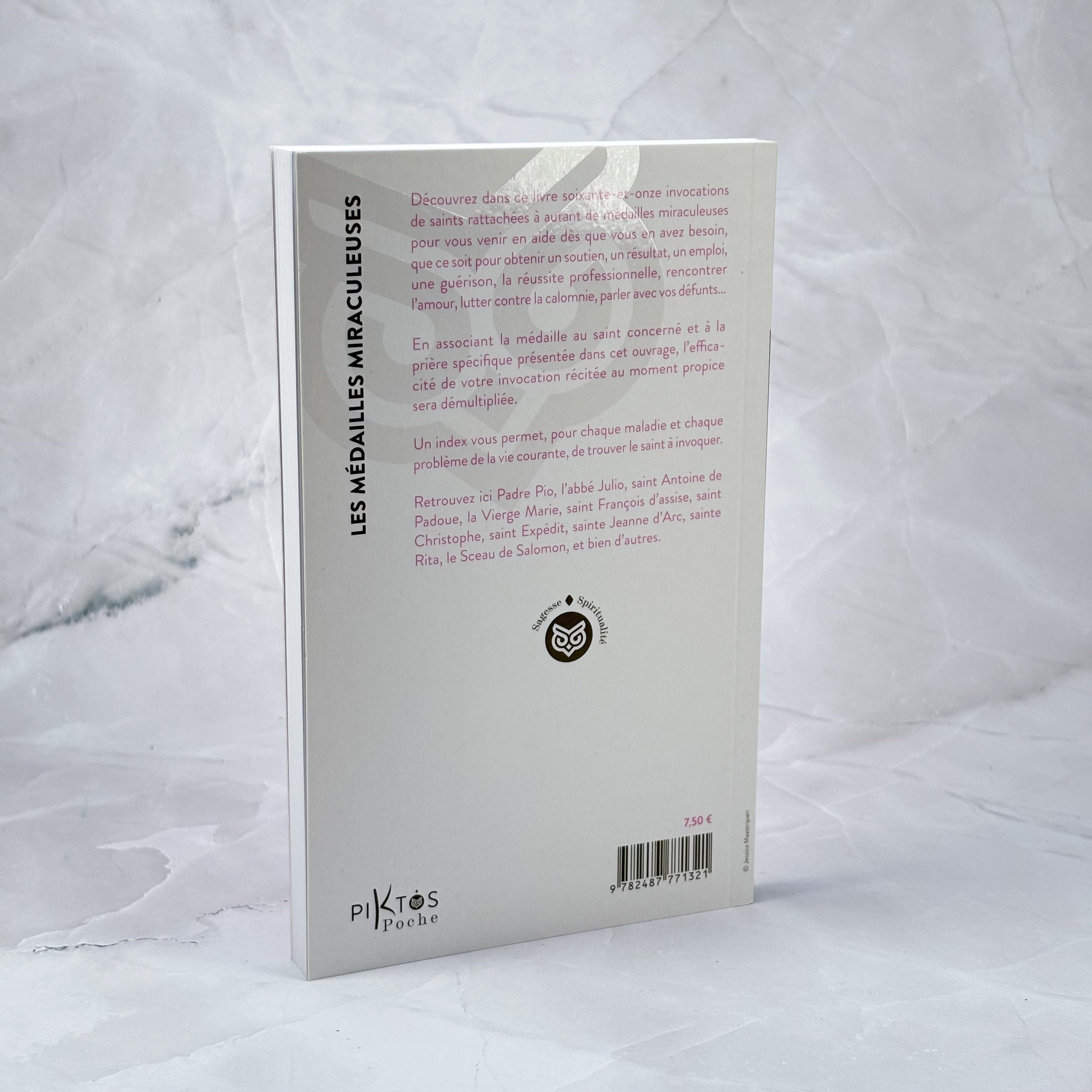 Cet ouvrage réunit soixante-et-onze invocations de saints, chacune associée à une médaille miraculeuse destinée à apporter un appui dans les moments où le besoin se fait sentir. Qu’il s’agisse de rechercher un soutien, d’atteindre un objectif, de trouver un emploi, de favoriser une guérison, d’encourager la réussite professionnelle, de rencontrer l’amour, de faire face à la calomnie ou de maintenir un lien avec les défunts, ces prières offrent un cadre structuré pour orienter la demande.