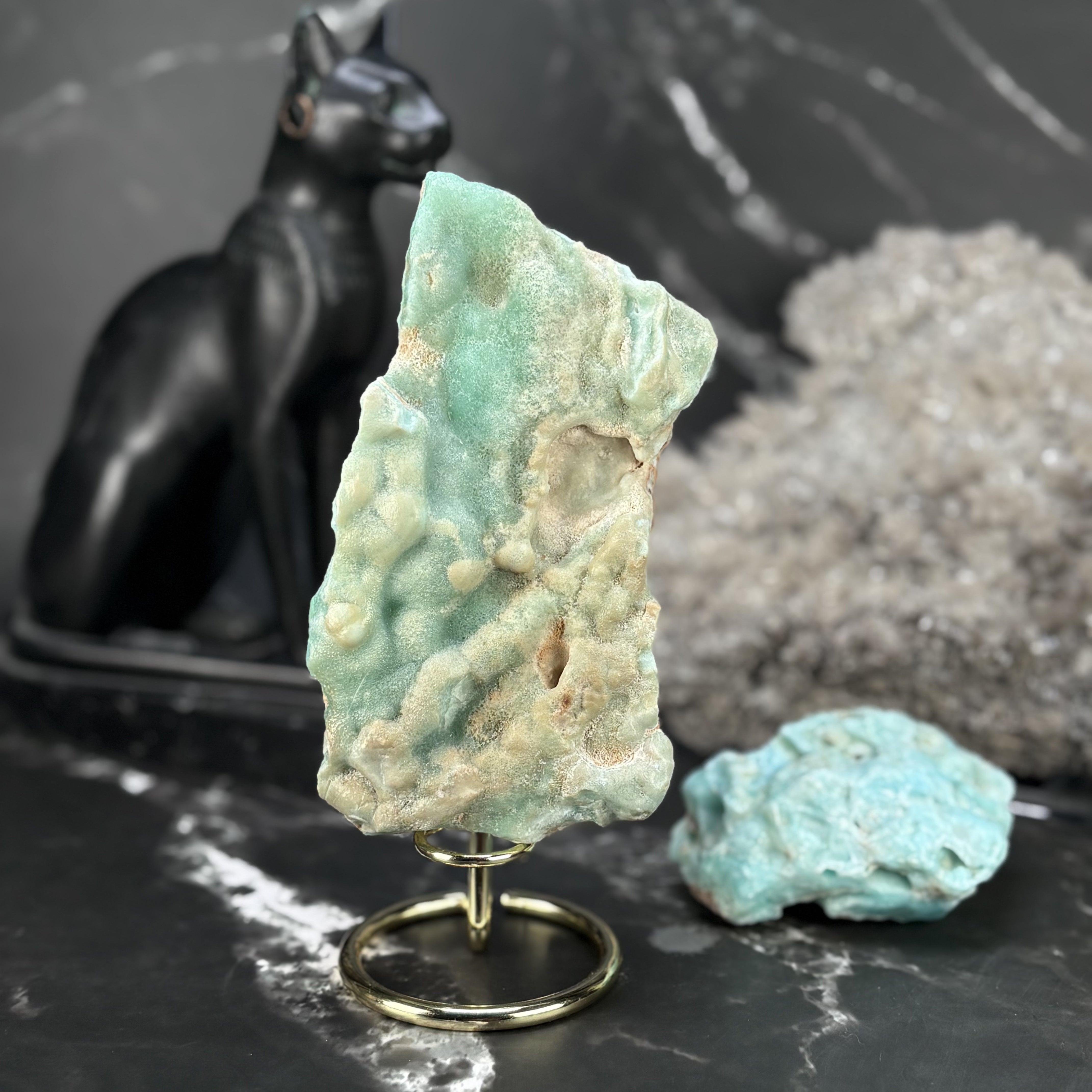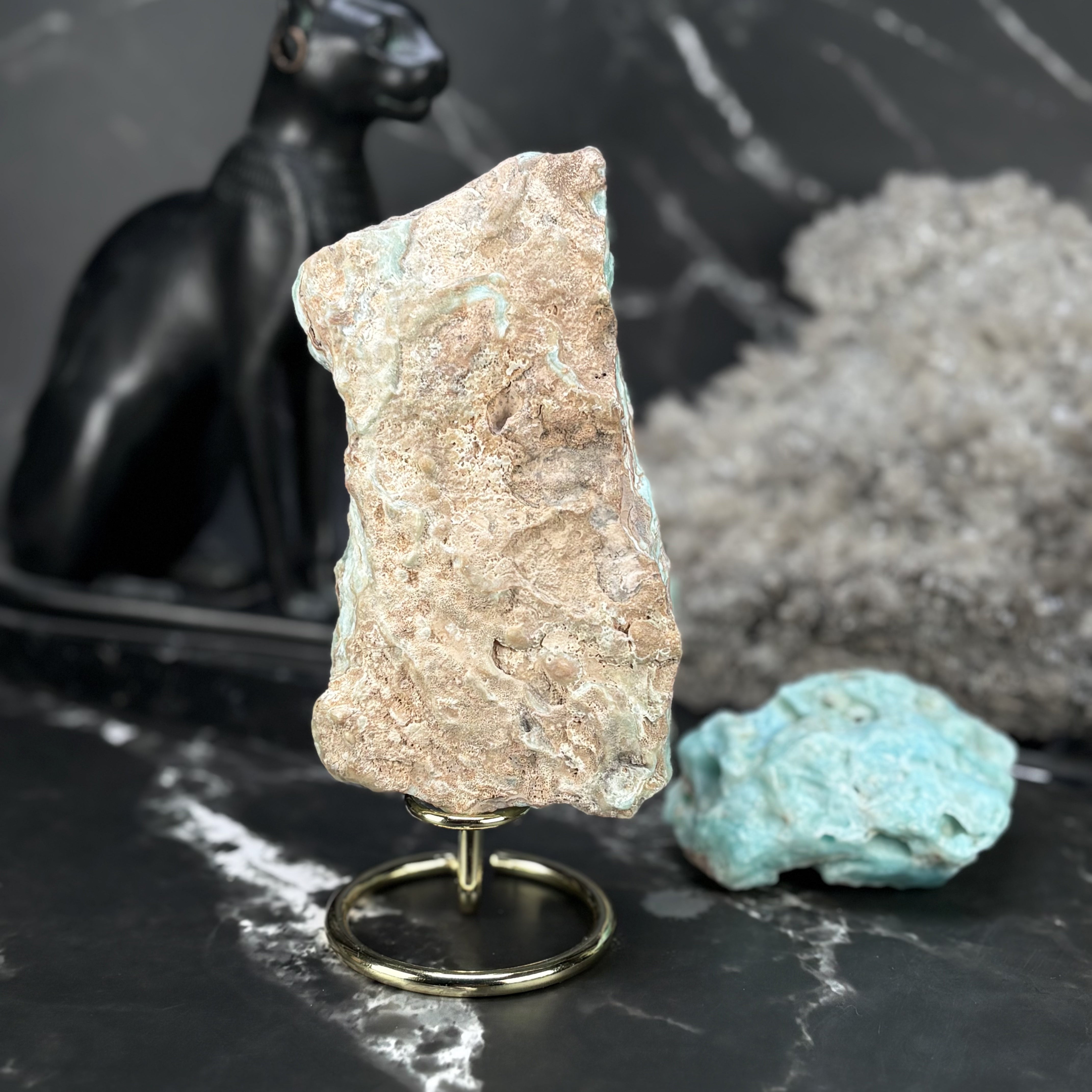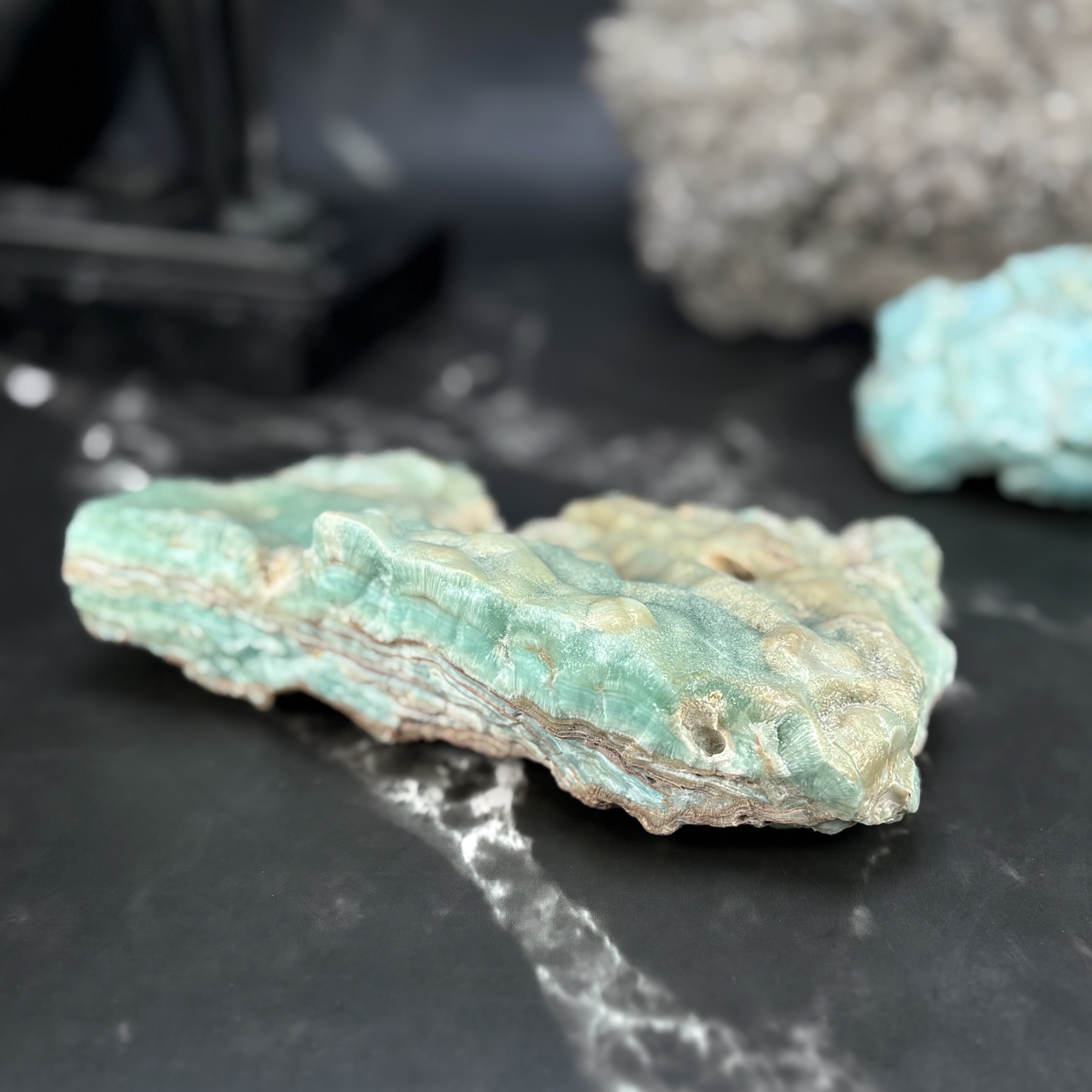 L’Aragonite Bleue ajoute à l’ancrage traditionnel de ce minéral une dimension plus douce et apaisante. Sa couleur évoque la tranquillité et le recul émotionnel, favorisant une attitude stable face aux défis du quotidien. Elle aide à concentrer son attention sur un objectif précis et à maintenir une progression régulière, sans agitation inutile. Cette variante plus rare soutient également l’équilibre intérieur, apportant calme et clarté dans les périodes où l’esprit se disperse. Elle devient ainsi une pierre de cohérence et de stabilité, qui encourage une présence à soi plus posée et plus consciente.