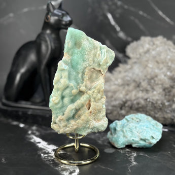 Ainsi, la l'Aragonite est une pierre qui permet de garder les pieds sur terre et d'améliorer ainsi la concentration vers un objectif. Bien que l'Aragonite soit un minéral plutôt commun, sa variante bleue est quant à elle plus rare.