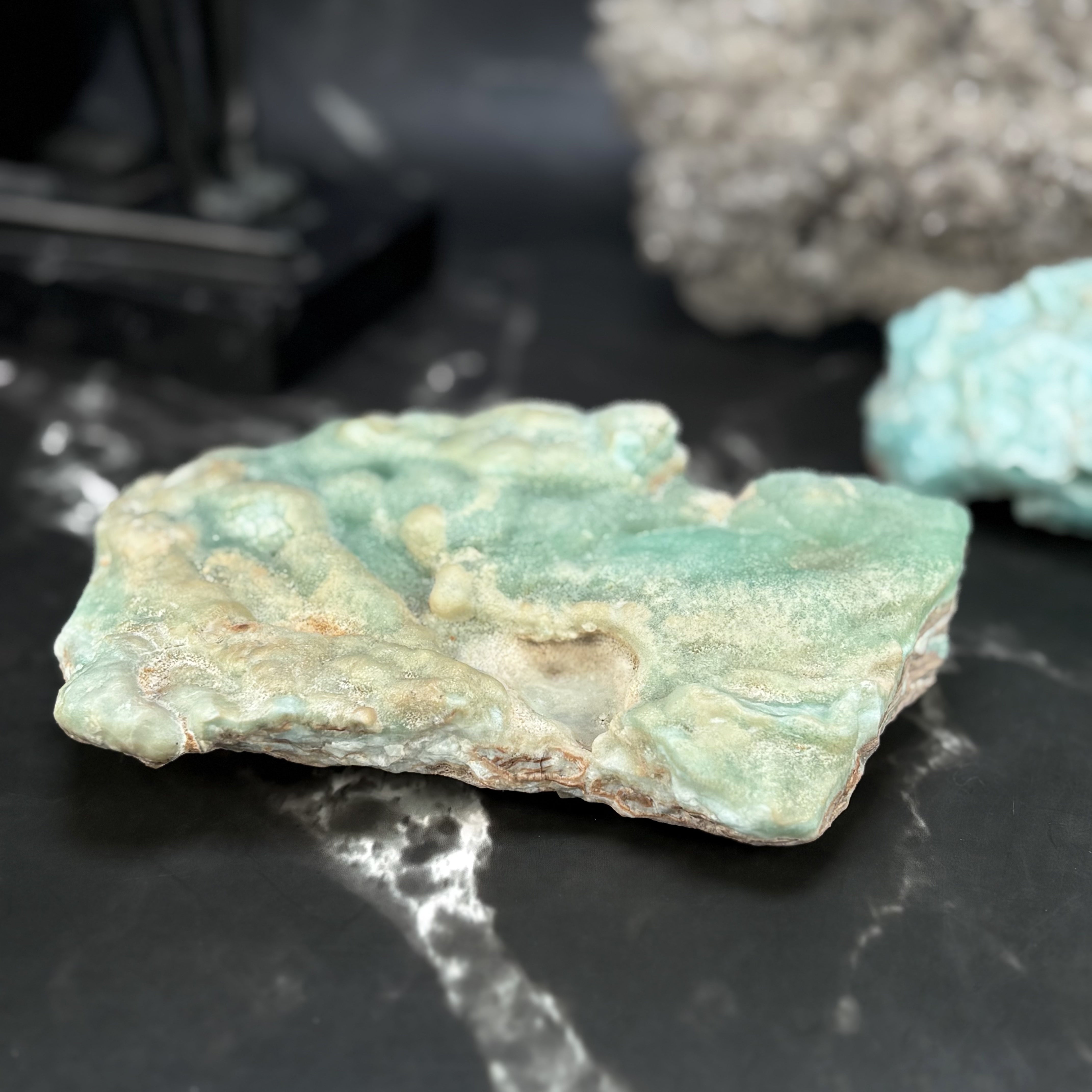 Ce morceau brut d’Aragonite Bleue est proposé à l’unité et met en valeur la texture naturelle de ce minéral sédimentaire. Sa surface irrégulière rappelle son origine géologique et sa formation lente dans des environnements denses. Posé sur un bureau, un autel ou une étagère, il apporte une note de sobriété minérale et une énergie stable qui accompagne le travail, l’étude ou la méditation. Chaque pièce possède ses nuances bleutées et son caractère propre.