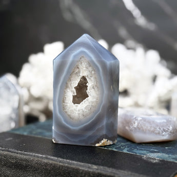 Particulièrement adaptée dans les espaces de travail, l'Agate Druzy améliore la concentration, les capacités intellectuelle et permet la créativité. Elle est donc une pièce de choix à poser sur un bureau par exemple.