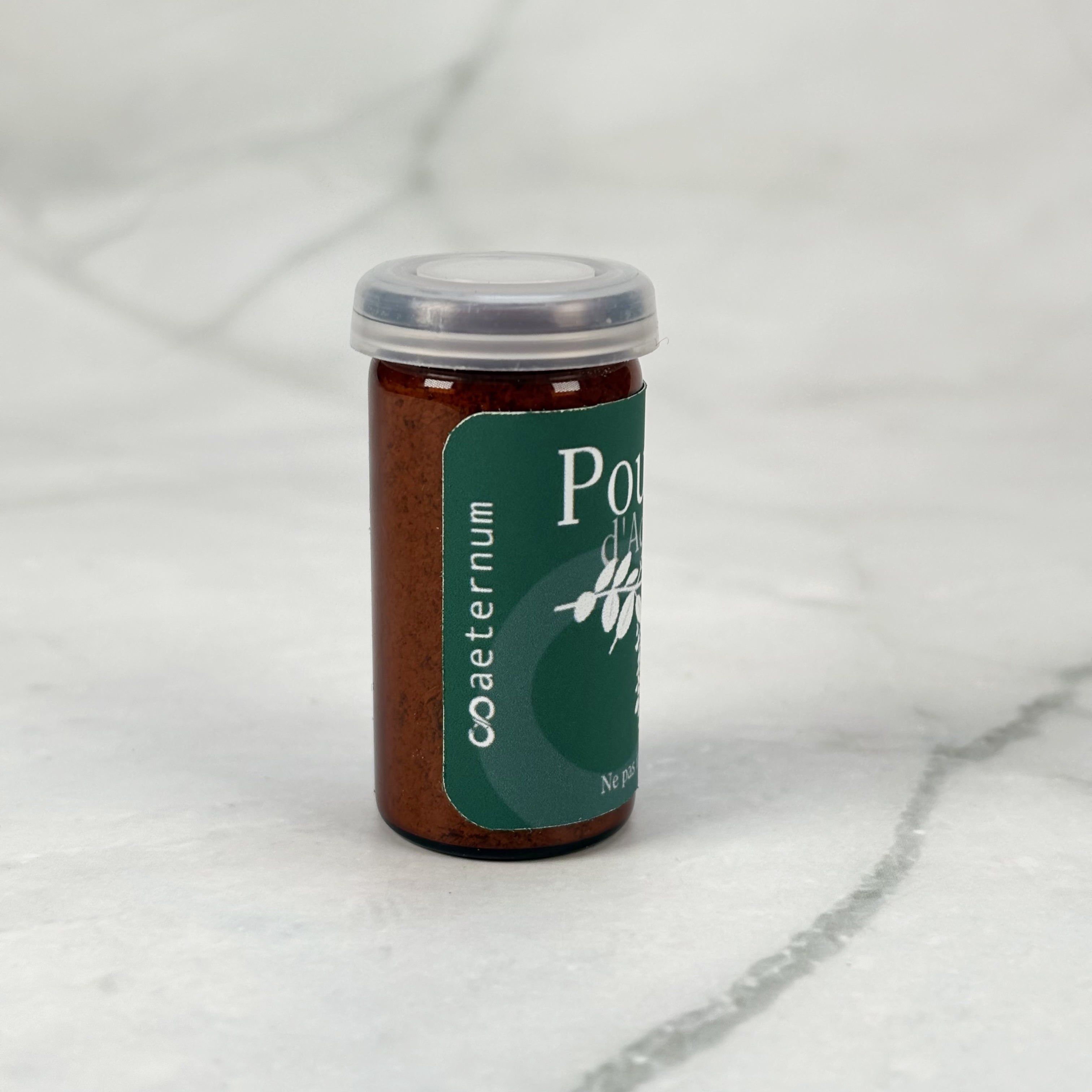 La poudre est livrée dans un flacon de conservation en verre.