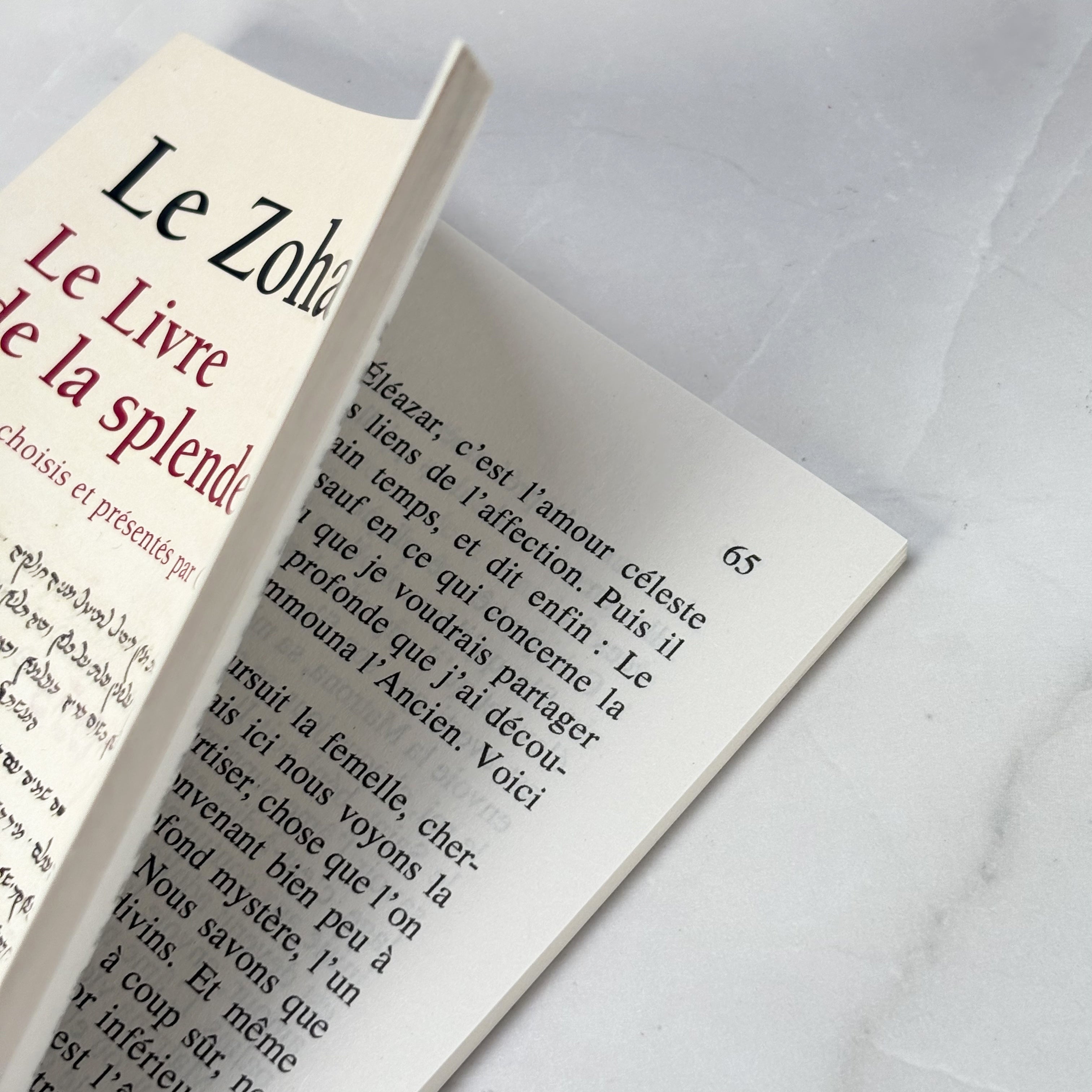Le Zohar ou Livre de la splendeur occupe une place centrale dans la tradition spirituelle juive et dans l’histoire de la Kabbale. Issu d’un vaste commentaire de la Loi, il suit l’architecture des cinq premiers livres de la Bible et déploie une lecture dense, symbolique et profondément intérieure des Écritures. L’ouvrage présenté ici rassemble des extraits choisis, sélectionnés pour la force de leurs images et pour leur capacité à rendre sensible une vie intérieure structurée par le texte sacré. Cette approche permet une entrée progressive dans une œuvre exigeante, sans perdre la richesse de sa pensée.