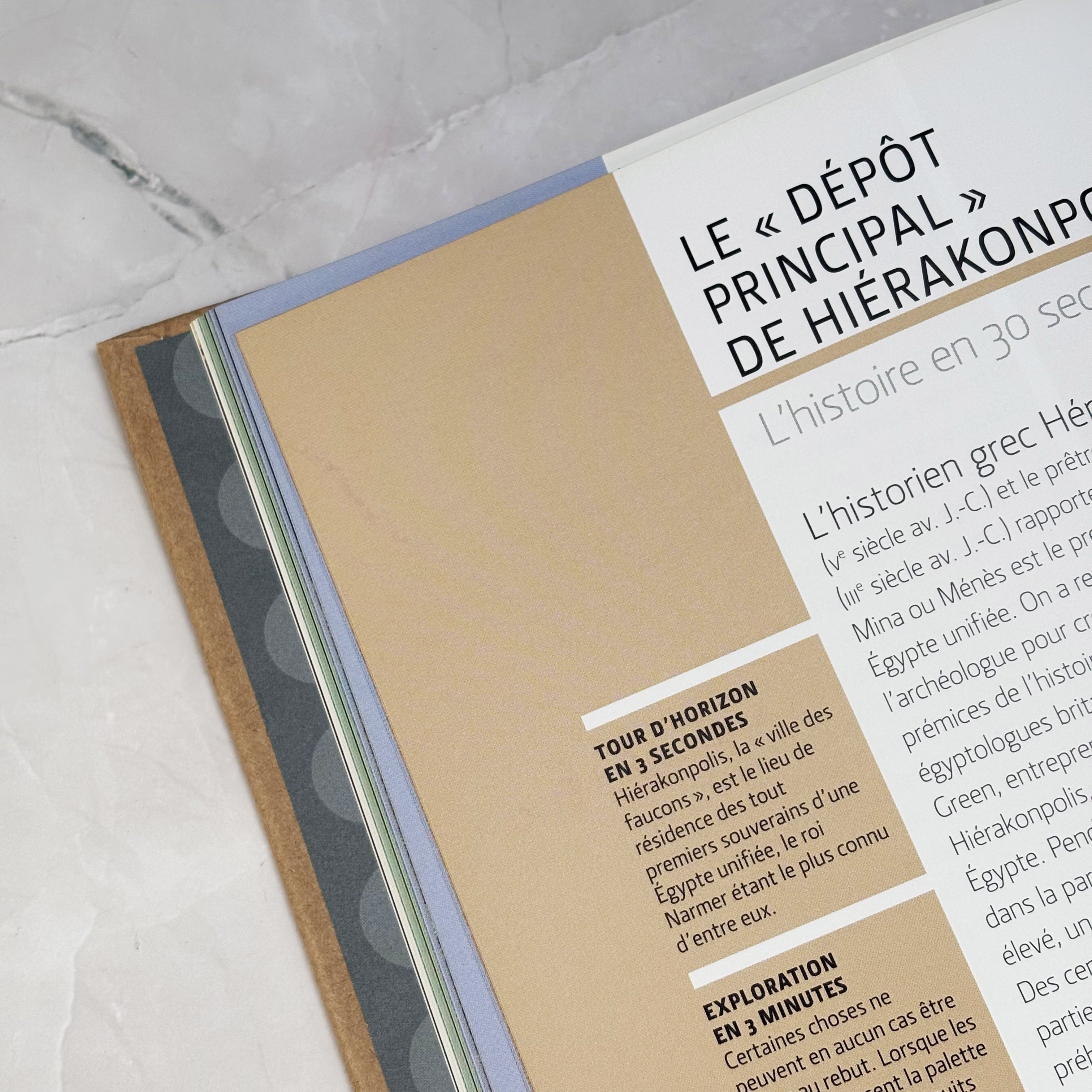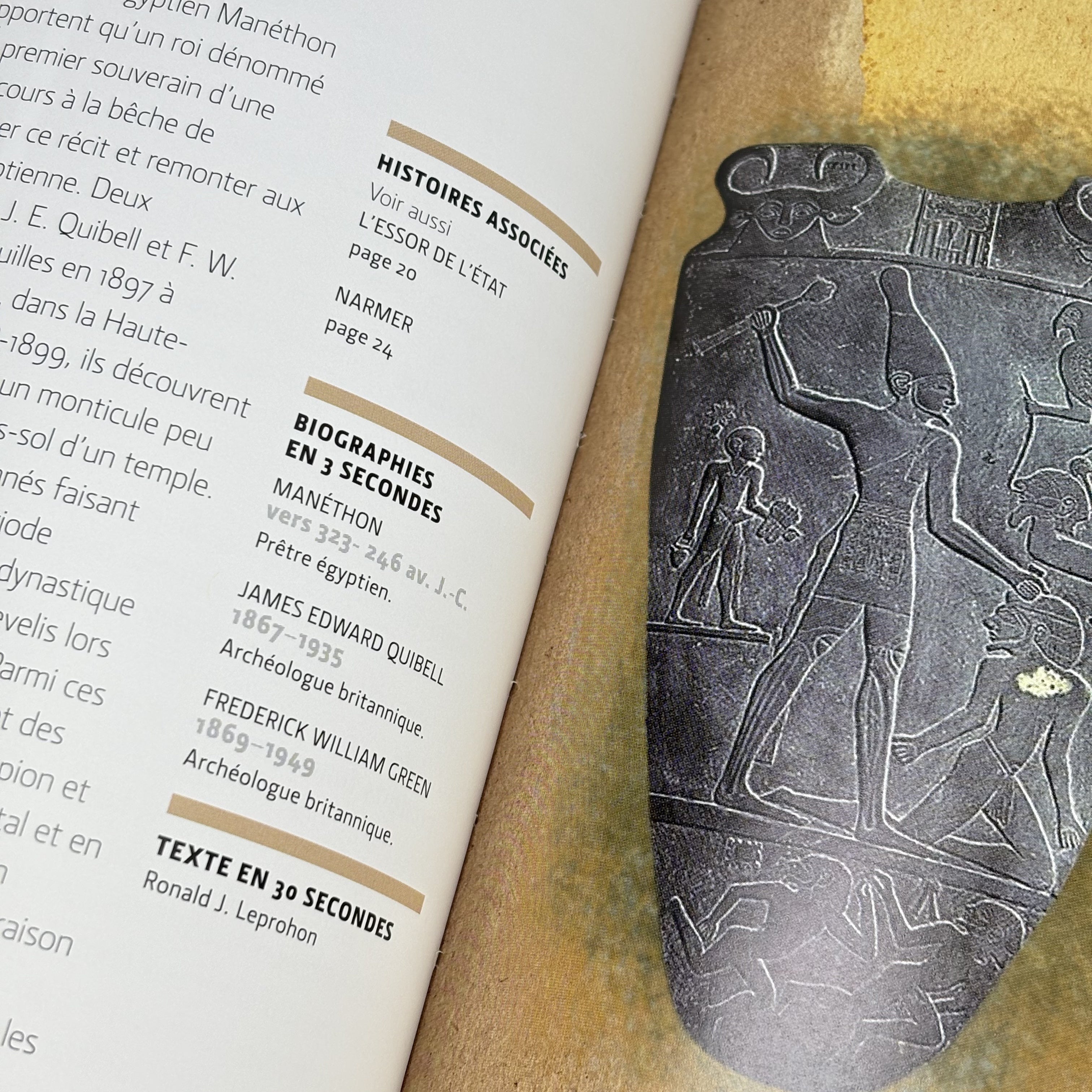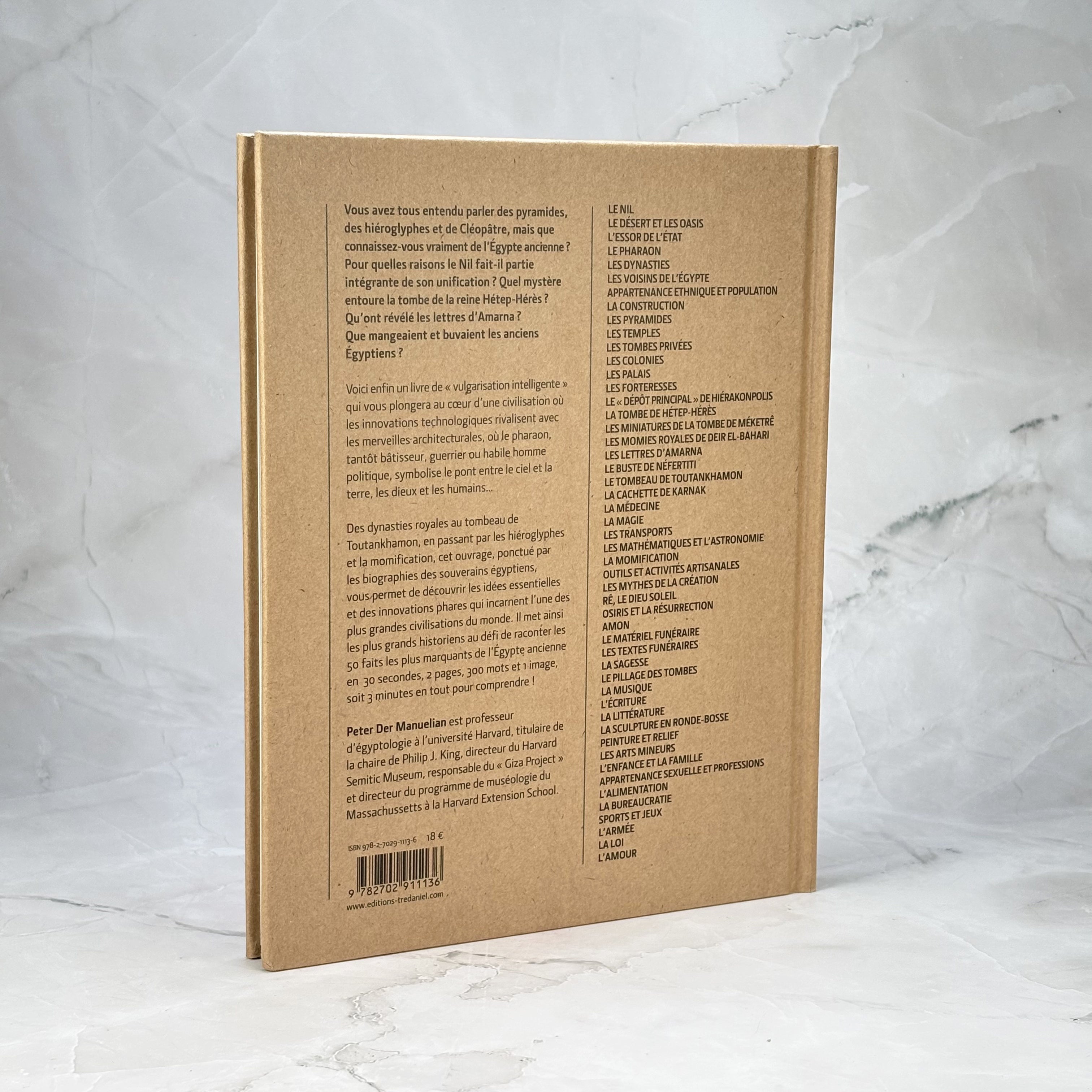 Ce livre adopte un concept original de “vulgarisation intelligente” : chaque sujet est présenté en 30 secondes, sur 2 pages, en 300 mots et accompagné d’une image explicative. Cette approche permet de saisir rapidement les notions essentielles tout en conservant la rigueur historique. Les plus grands spécialistes y relèvent le défi de rendre accessibles les questions complexes : l’unification du Nil, la tombe d’Hétep-Hérès, les lettres d’Amarna ou encore les habitudes alimentaires des anciens Égyptiens. L’ensemble offre une lecture fluide et stimulante, parfaite pour enrichir sa culture générale tout en se divertissant.