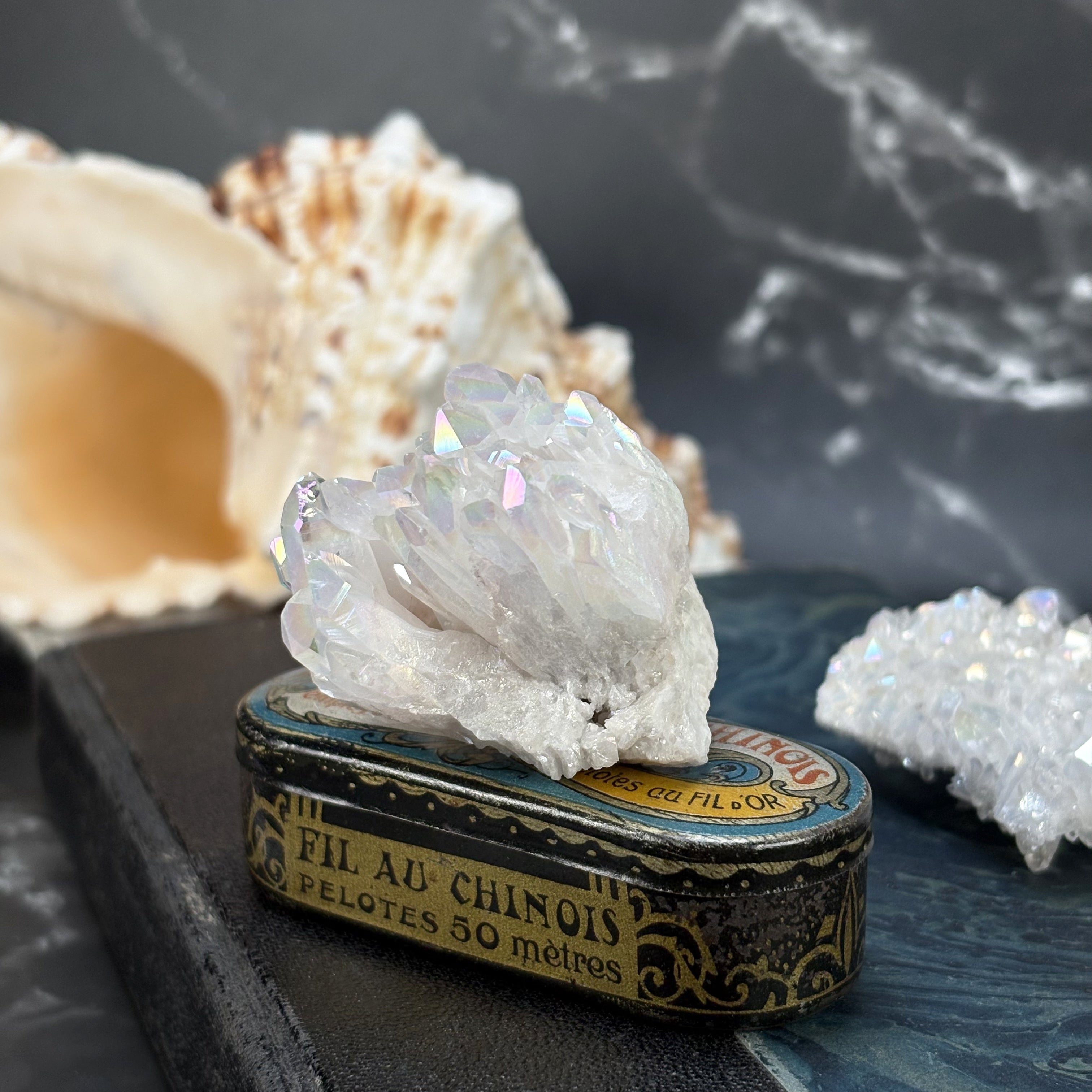 Le Quartz Aura Pearl se distingue dans les pratiques magiques par son influence douce mais puissante sur l’élévation intérieure. Il accompagne les rituels liés à l’expansion de conscience, à l’ouverture spirituelle et à la connexion avec les plans subtils. Sa surface irisée évoque une passerelle entre les mondes visibles et invisibles, ce qui le rend précieux lors des séances de méditation ou des travaux de guidance spirituelle. Il agit comme un pont symbolique entre la perception ordinaire et les dimensions plus élevées de l’expérience magique. Utilisé avec intention, il invite à un recentrage calme et lumineux, propice à la lucidité intérieure.