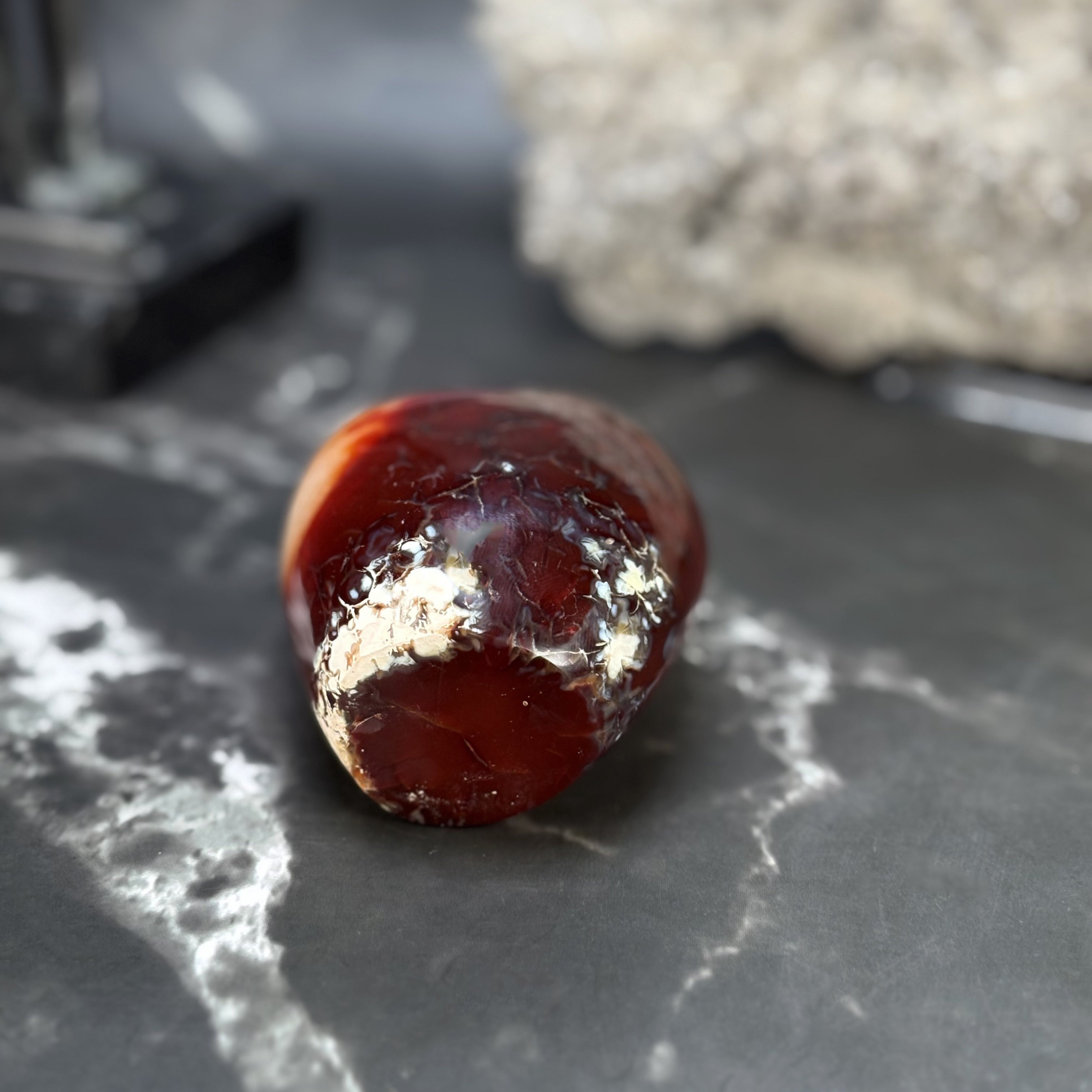 La Cornaline est reconnue comme une pierre d’énergie et de courage. Elle agit comme une flamme intérieure qui ravive l’ardeur, encourage la prise d’initiative et renforce la confiance. Sa teinte rouge-orangée rappelle la chaleur du feu, la détermination et la créativité. Elle aide à stimuler la motivation et accompagne les périodes où il devient nécessaire de retrouver force et dynamisme. Cette pierre soutient également l’expression personnelle et l’élan créatif, permettant de renouer avec une vitalité simple, directe et affirmée. Sa présence apporte vigueur et stabilité émotionnelle dans les moments où l’on cherche à avancer avec assurance.