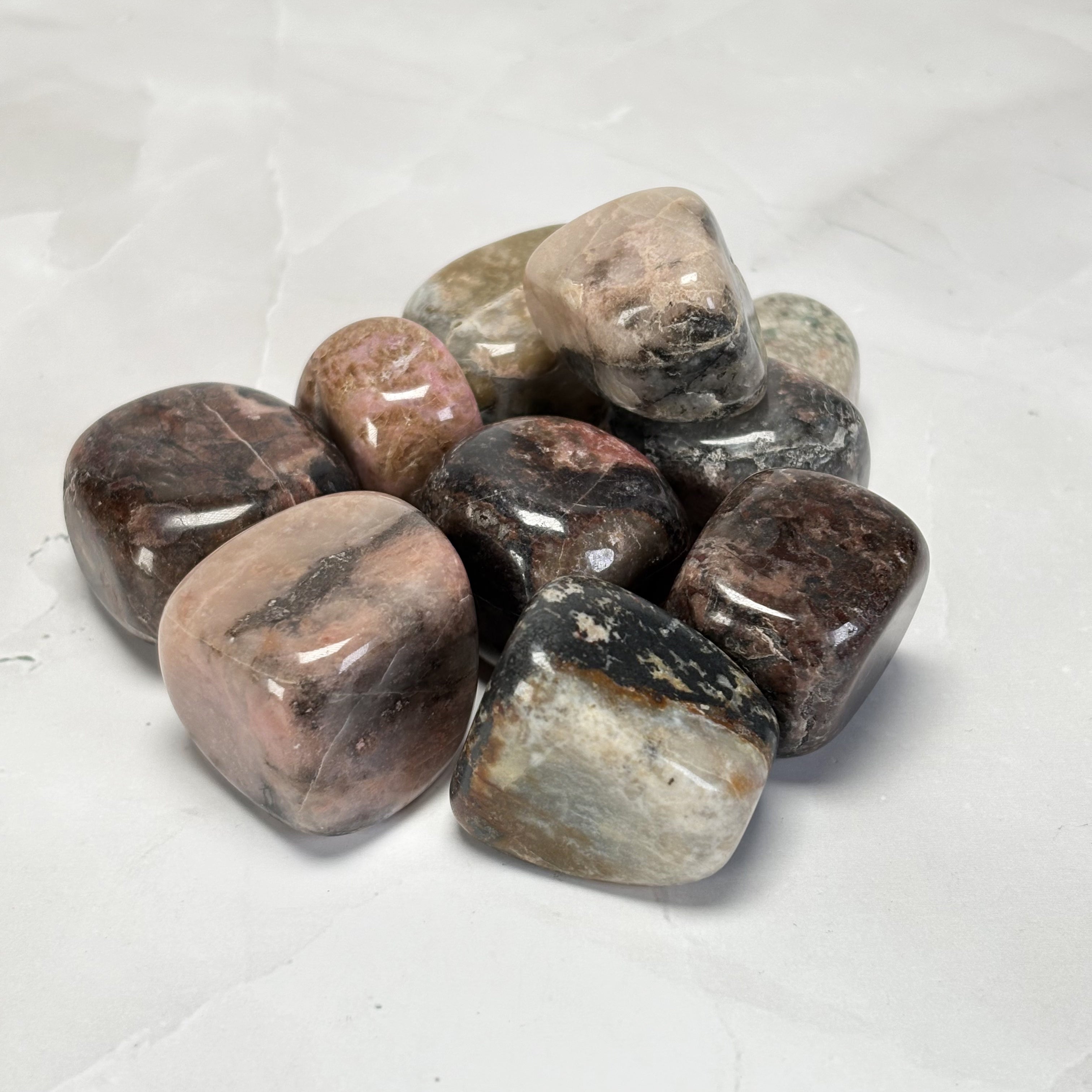 Ces pierres roulées de Rhodonite en qualité Media (AA) sont vendues à l'unité.