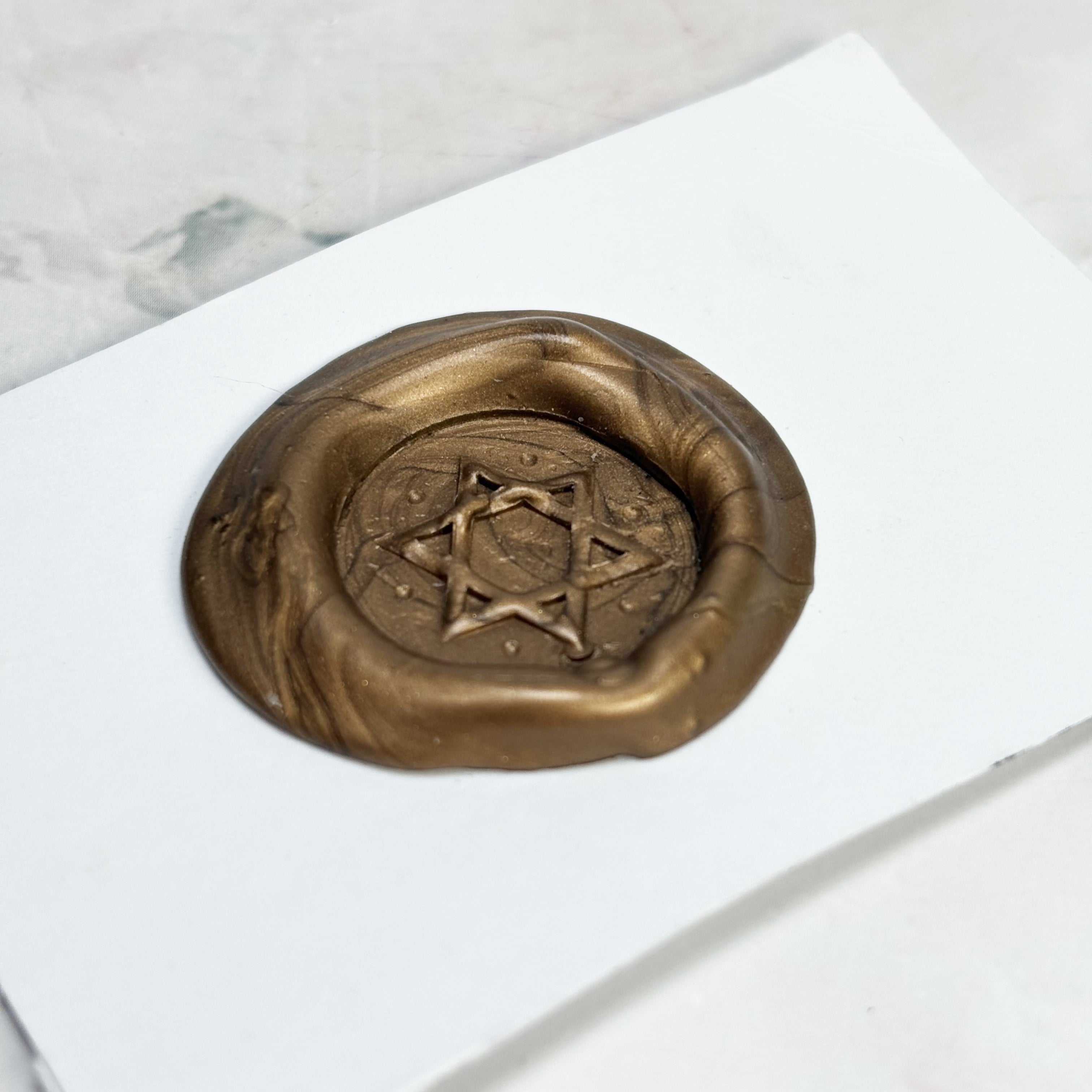 Nous avons créé ce sceau Salomon (puissant symbole de protection et de connexion en haute magie) pour sceller vos lettres, incantations ou secrets et ainsi renforcer l'intention qu'ils contiennent.