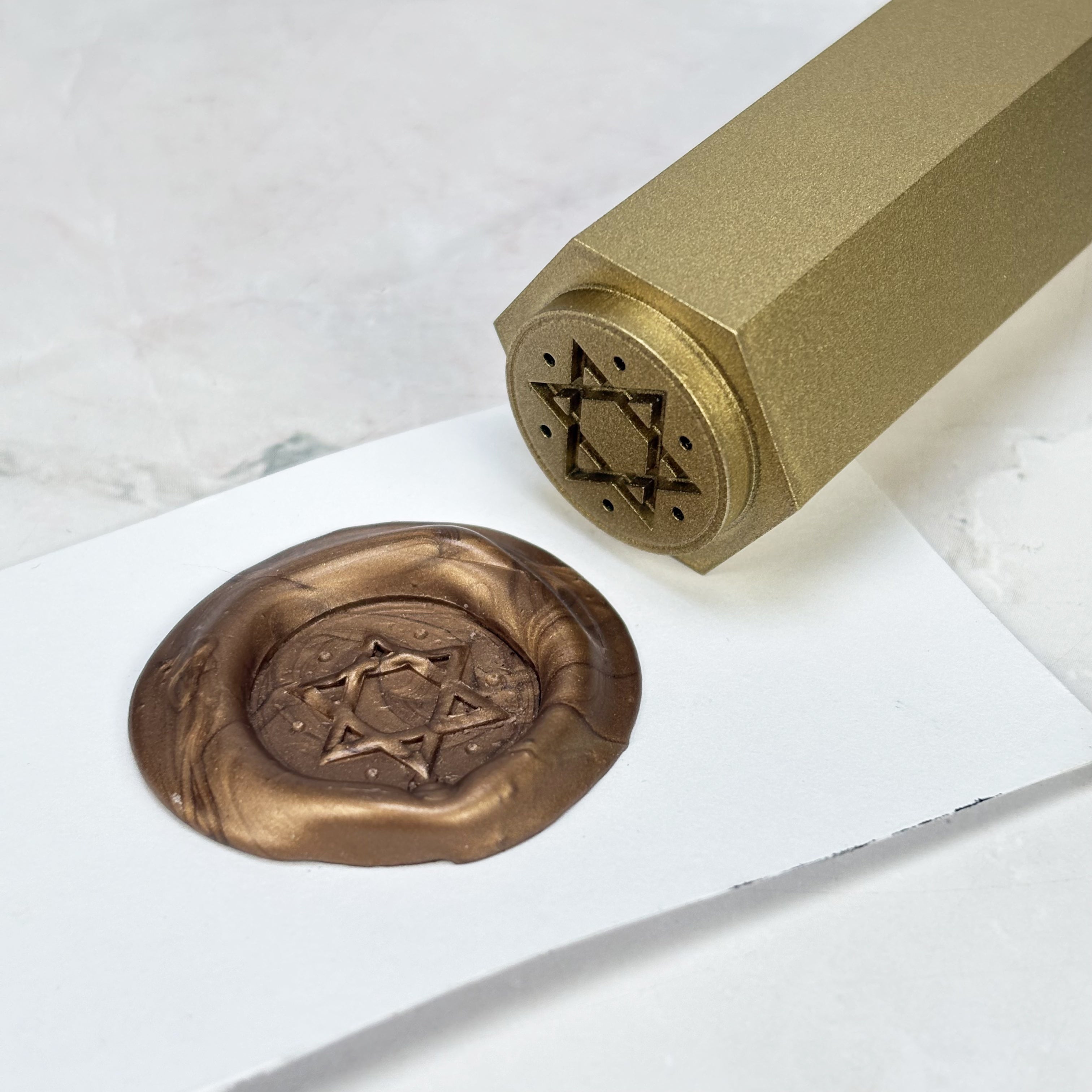 Le sceau de Salomon est utilisé dans la tradition magique comme un symbole d’équilibre, de maîtrise et de protection. Il agit comme un point d’union entre les forces qui entourent un travail spirituel. En le gravant dans la cire, vous marquez votre texte d’un appui ancien, reconnu pour sa capacité à sceller, à ordonner et à préserver. Ce sceau ne se contente pas d’ajouter une marque esthétique : il affirme une volonté d’organisation et de continuité. Il devient ainsi un outil fiable pour tous les travaux qui demandent rigueur, structure et engagement clair.