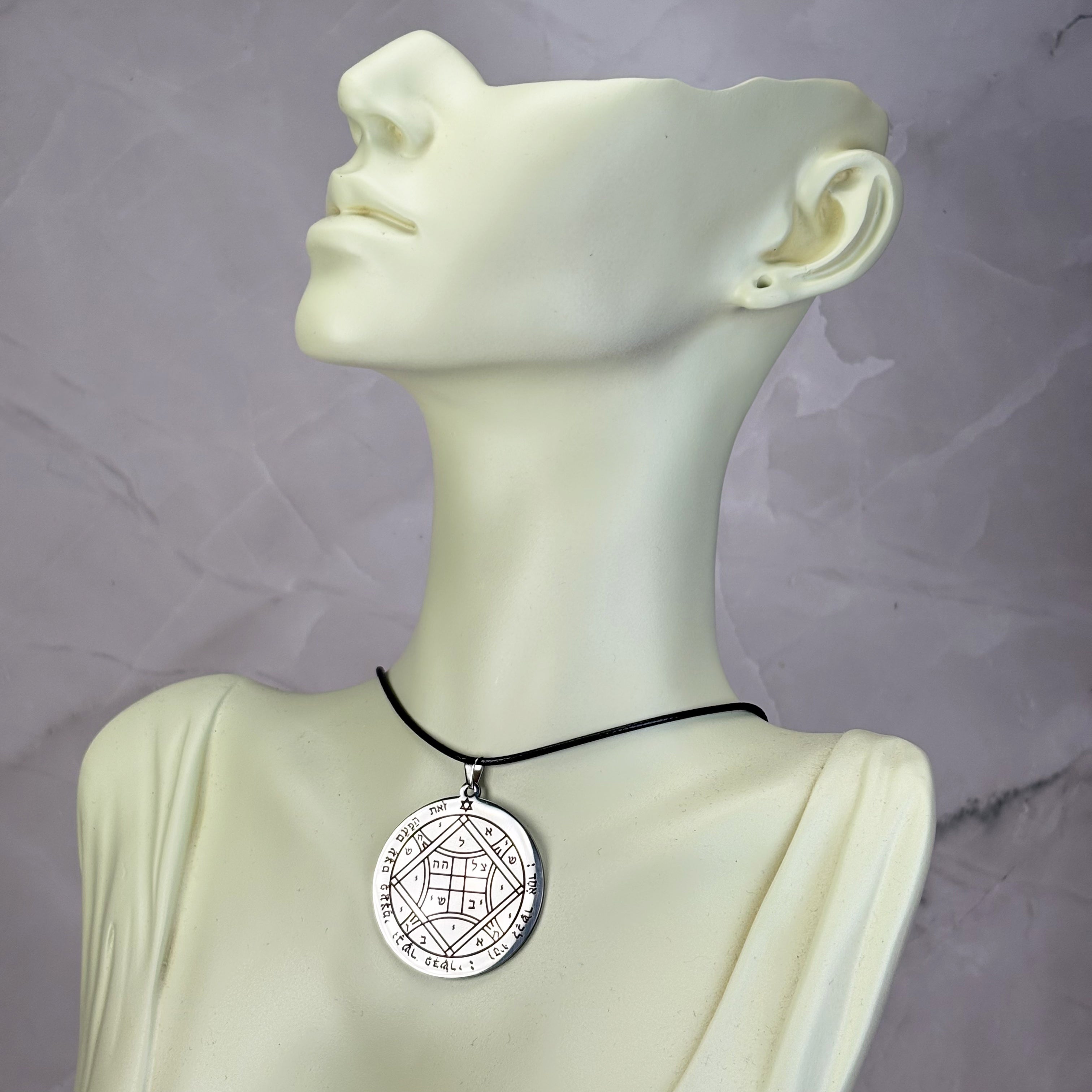 Ce talisman planétaire de Salomon est destiné à contraindre les esprits de Vénus afin de faire venir aussitôt la personne désirée. La tradition rapporte qu’il agit par une autorité directe sur les intelligences vénusiennes, les obligeant à influer rapidement sur les dispositions et les mouvements de la personne visée. Son action relève de l’appel immédiat et de la contrainte opérative, et non de la consolidation progressive d’un lien existant. Ce pentacle s'active le vendredi, jour consacré à Vénus, afin de renforcer la rapidité et l’efficacité de l’intervention des esprits.