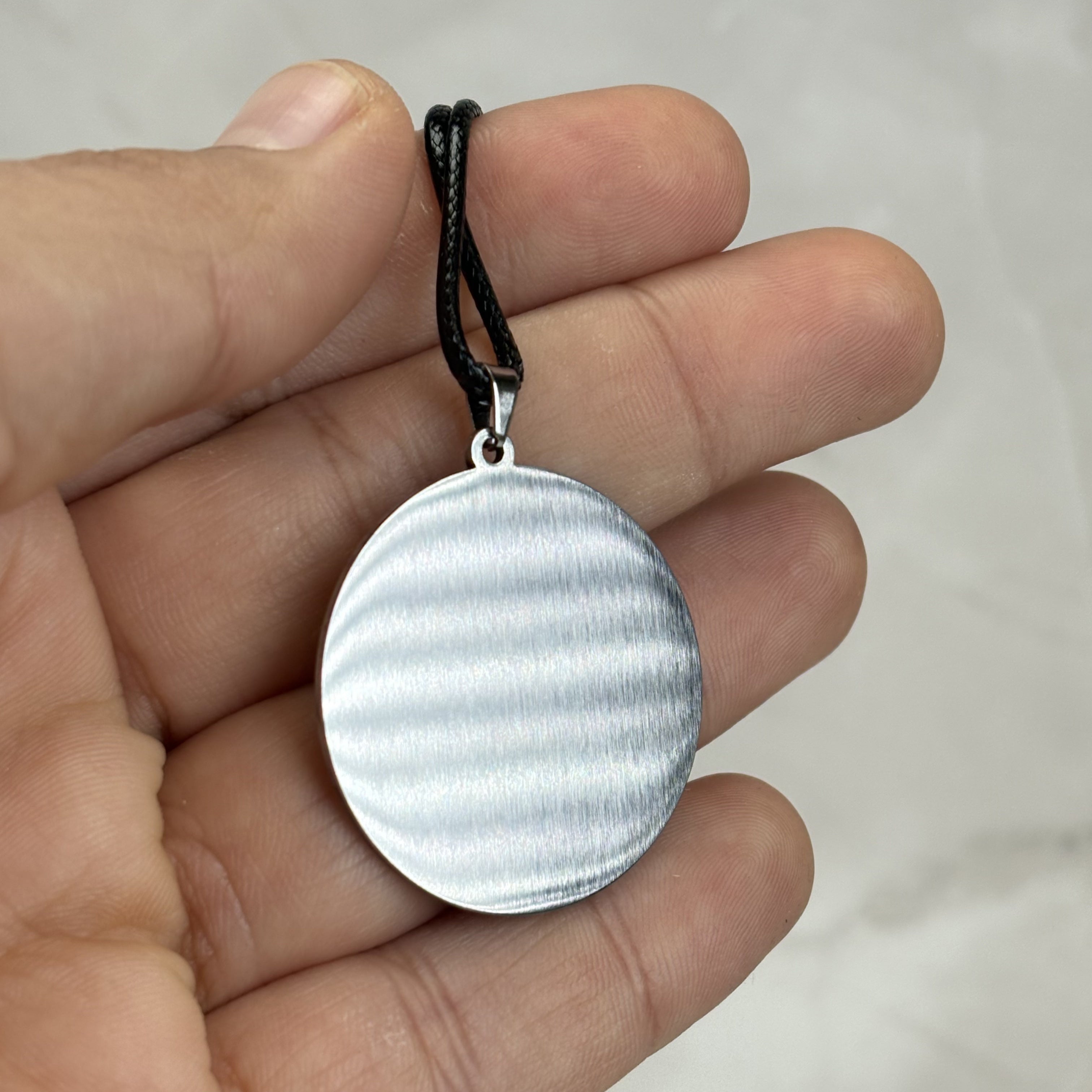 Ce talisman est fabriqué en acier inoxydable et fourni avec un cordon.