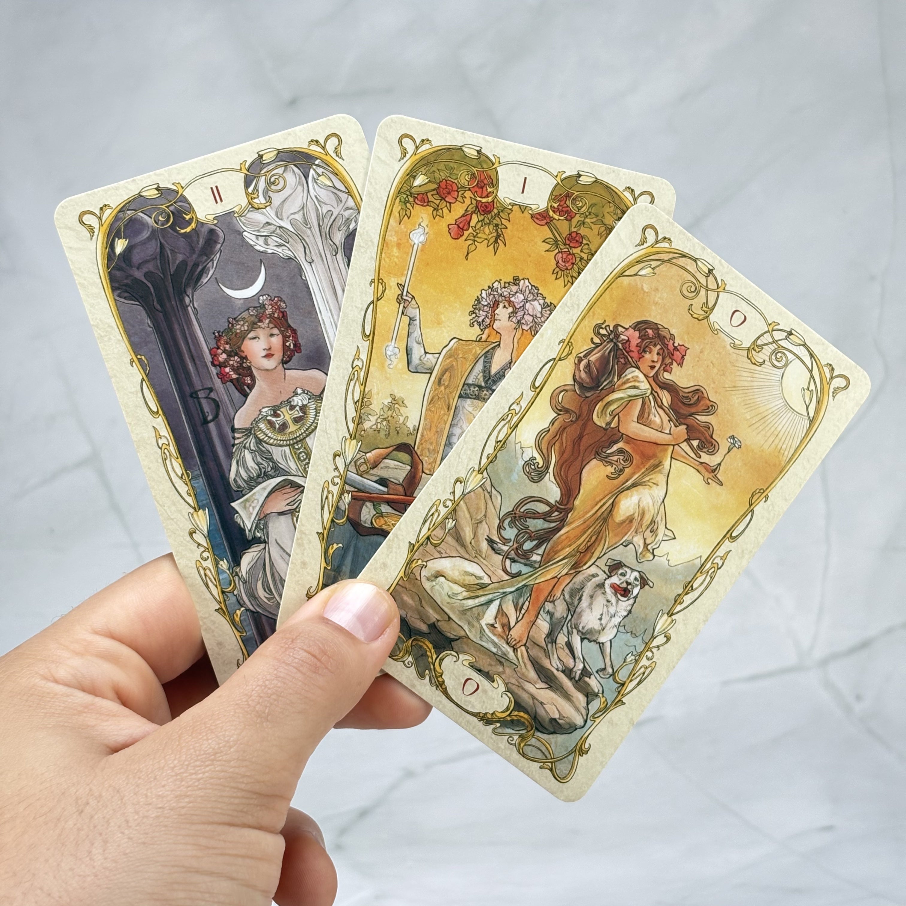 Le tarot Mucha est un véritable hommage à Alphonse Mucha, pionnier du style Art Nouveau, qui a tant inspiré les occultistes de la Belle Époque. Chaque arcane a été ainsi adaptée, ce qui ravira tous les amoureux de cette esthétique si particulière.