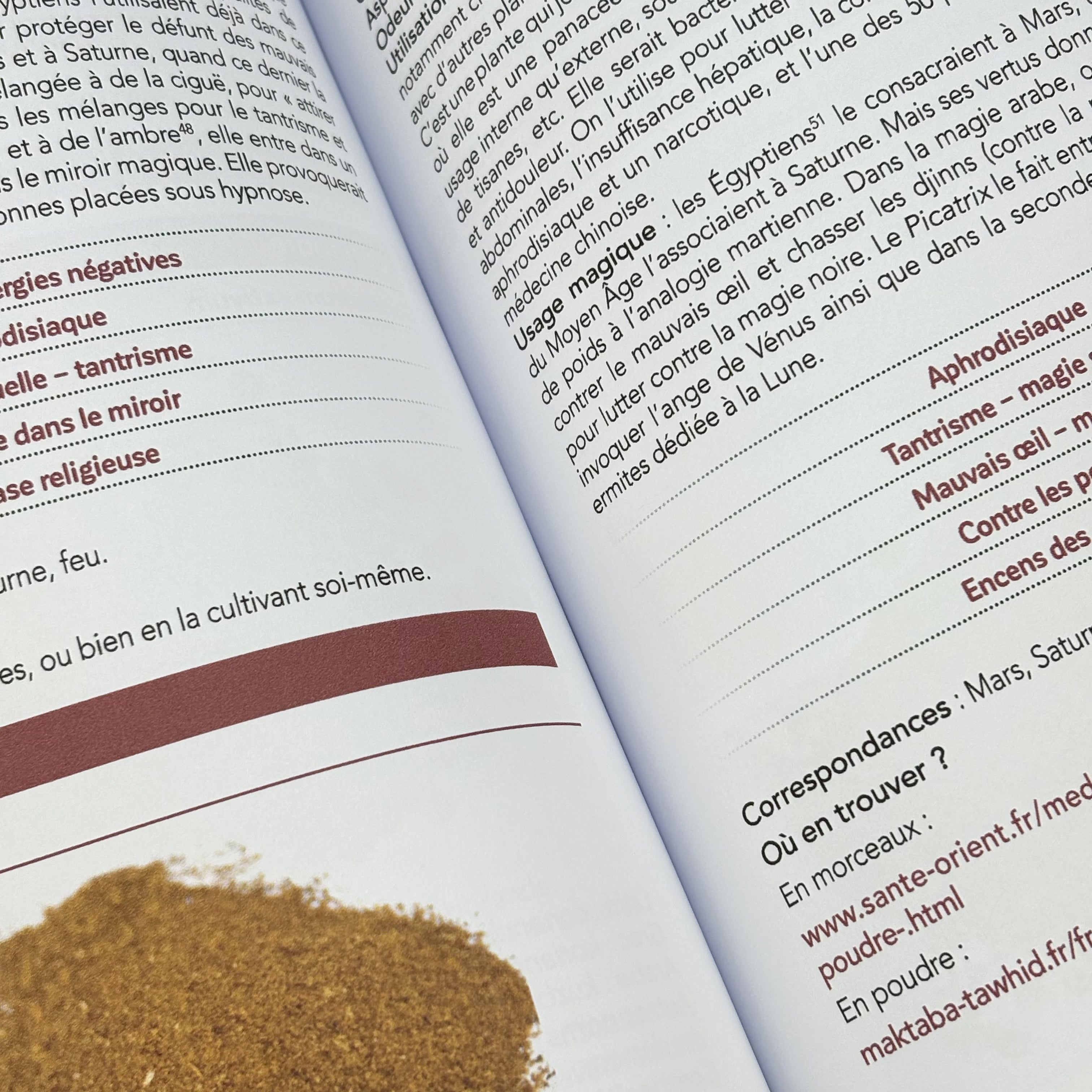 Pour construire ce traité, l’auteur s’appuie sur l’étude de plusieurs centaines de manuscrits anciens et croise des savoirs issus de domaines variés tels que la magie, la botanique, l’anthropologie et l’histoire. Ce travail théorique se prolonge par une phase d’expérimentation destinée à affiner les données recueillies. Plus de cent vingt végétaux y sont examinés et classés selon leur nature, qu’il s’agisse de résines, de bois, de racines, de graines, de feuilles, de fleurs ou de fruits. Chaque matière est présentée avec des illustrations en couleur et des indications précises pour en identifier la qualité.